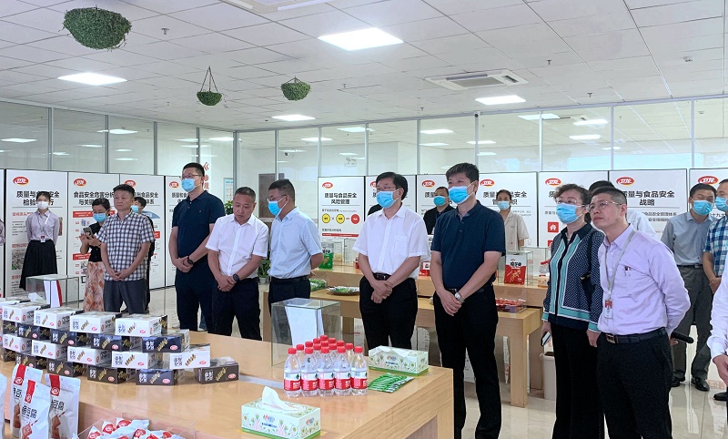 9月22日,国家市场监督管理总局食品安全抽检监测司副司长梁钢,食品安全抽检监测司二级巡视员郝明虹带队莅临卫龙美味调研。省市场监管局党组成员、副局长王建防,漯河市副市长周剑,漯河市市场监管局局长张炜,市市场监管局副局长马强华,市市场监管局食品生产监管科科长王文甫,开发区管委会副主任孙波,开发区市场监管分局局长王铁军等相关部门负责人陪同调研。