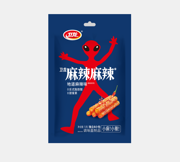 精选优质小麦,品质稳定,麦香浓郁; 一级大豆油,味道纯正,颜色透亮; 0反式脂肪酸 、0甜蜜素; 挤压熟制,非油炸,蓬松劲道,每一口都软糯多汁; 爱辣之选,麻辣过瘾。